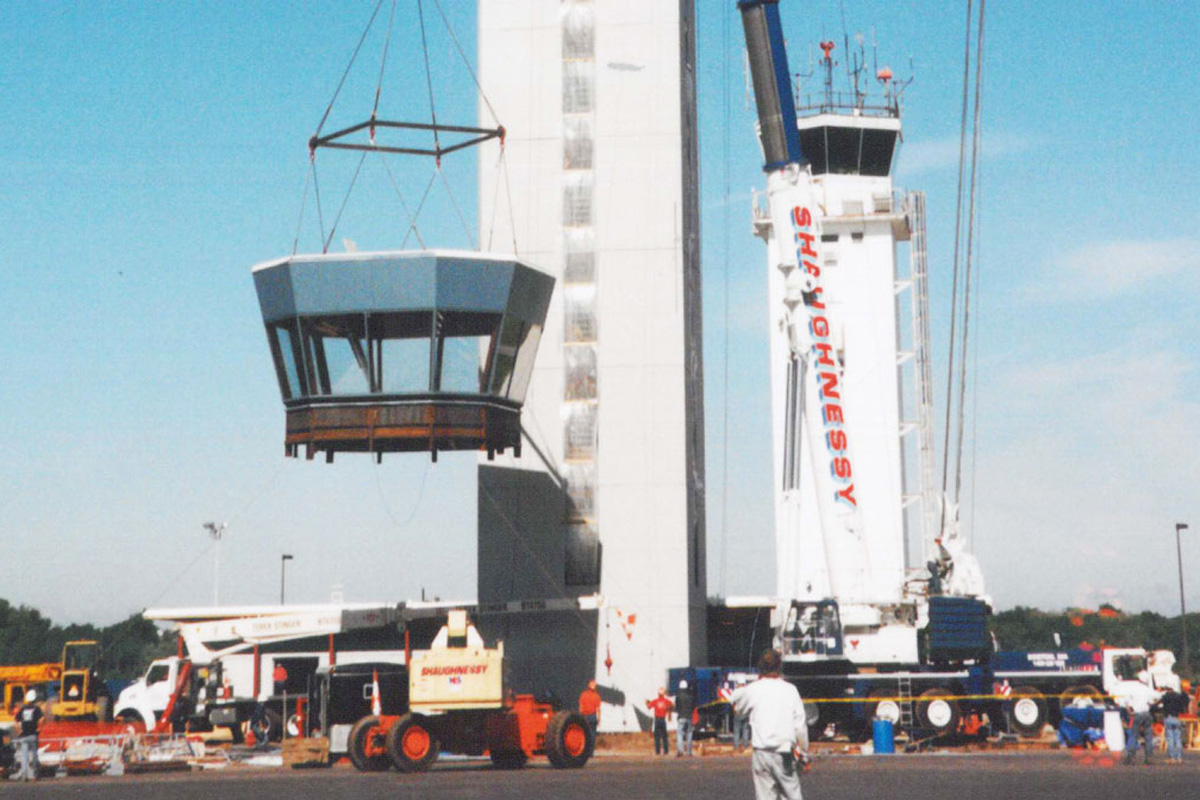 Methuen Construction built a 115-foot airport traffic control tower and a 4,500 square foot administrative base building at the Hanscom Field airport. Project included structural steel fabrication and erection for the tower, control cab, and base building, and associated site work.